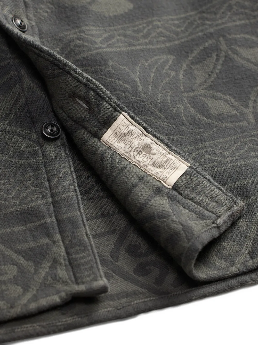 New Season Ralph Lauren RRL abstract-pattern overshirt Imported Highlights grey abstract pattern classic collar button closure long sleeves buttoned cuffs chest flap pockets Composition Outer: Cotton 100% Washing instructions Read Manufacturer Guidelines Product IDs FARFETCH ID: 32698718 Brand style ID: 782P05343