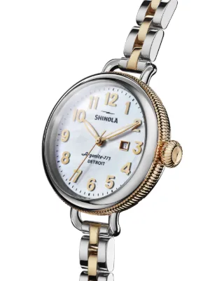 Shinola Birdy 3HD 34mm Imported Highlights silver-tone/gold-tone stainless steel Arabic dial round face clasp fastening Composition stainless steel, Rose Gold Product IDs FARFETCH ID: 18929731 Brand style ID: S0120077932