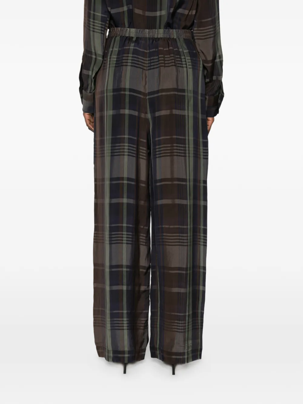 New Season The Frankie Shop Baxter sheer trousers Imported Highlights brown, blue and green sheer finish elasticated waistband side seam pockets Composition Viscose 100% Washing instructions Hand Wash Wearing The model is 5 ft 11 in wearing size S Product IDs FARFETCH ID: 31845259 Brand style ID: PAFS21518888