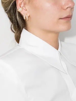 These gold-plated Tom Wood Liz crystal hoop earrings are crafted in the USA from solid 925 sterling plated with 1 micron 9K yellow gold. Each exhibits 40 white pavé cubic zirconia stones and is finished with a clip pin fastening. Leave it to Tom Wood to create earrings that promise to pavé the way to a jewellery box near you.