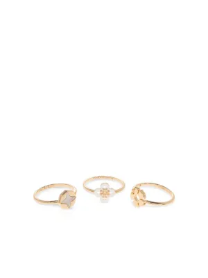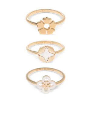 Tory Burch charm-embellished ring (set of three) Imported Highlights gold-tone halo band signature Double T motif set of three Composition Brass Product IDs FARFETCH ID: 30051315 Brand style ID: 168080
