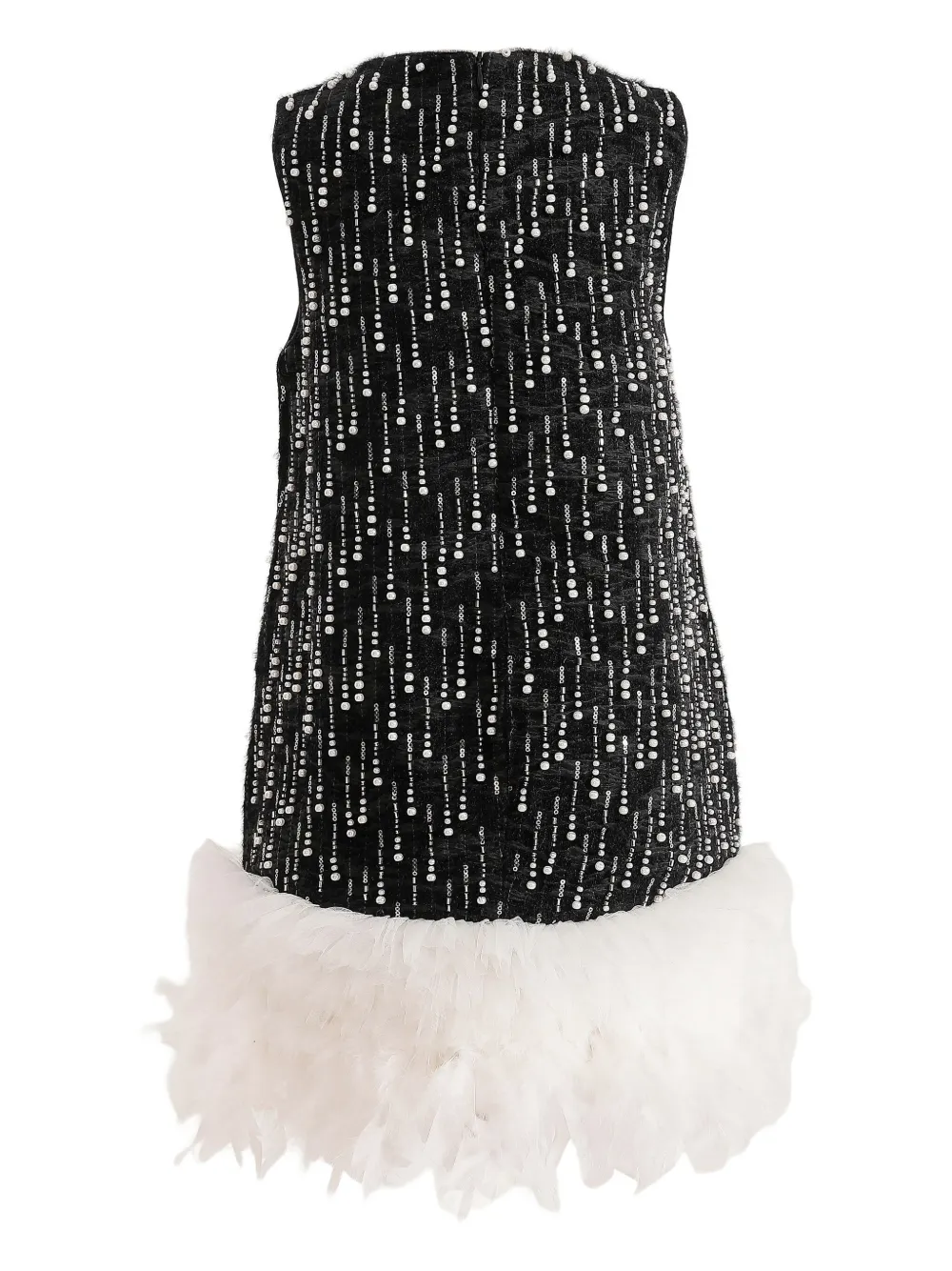 Tulleen beaded-embellishment dress Imported Highlights black feathered trim beaded embellishment sleeveless round neck zip fastening Composition Feather 100%, Fabric 100% Washing instructions Read Manufacturer Guidelines Product IDs FARFETCH ID: 32699949 Brand style ID: TUD52013