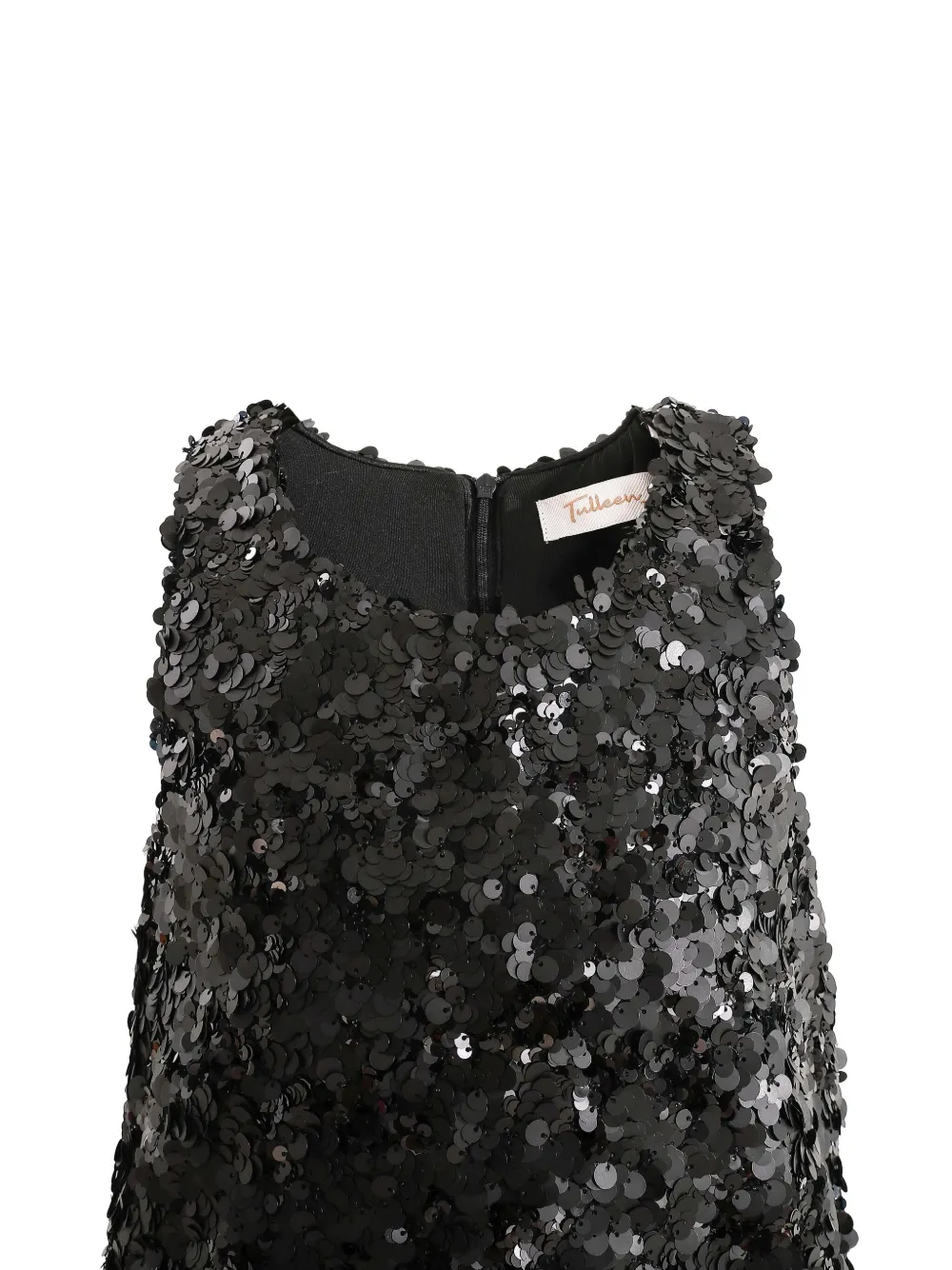 Tulleen sequin dress Imported Highlights black sequin embellishment feather hem sleeveless round neck zip fastening Composition Feather 100%, Fabric 100% Washing instructions Read Manufacturer Guidelines Product IDs FARFETCH ID: 32700399 Brand style ID: TUD52012