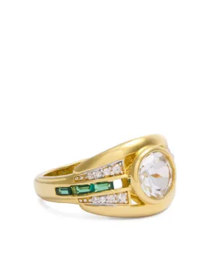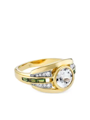 V JEWELLERY Olive crystal-embellishment ring Made in United Kingdom Highlights gold-tone crystal-embellishment round-cut green stones embellishment Composition 18K Rose Gold Plated Brass Product IDs FARFETCH ID: 25241105 Brand style ID: 3740V
