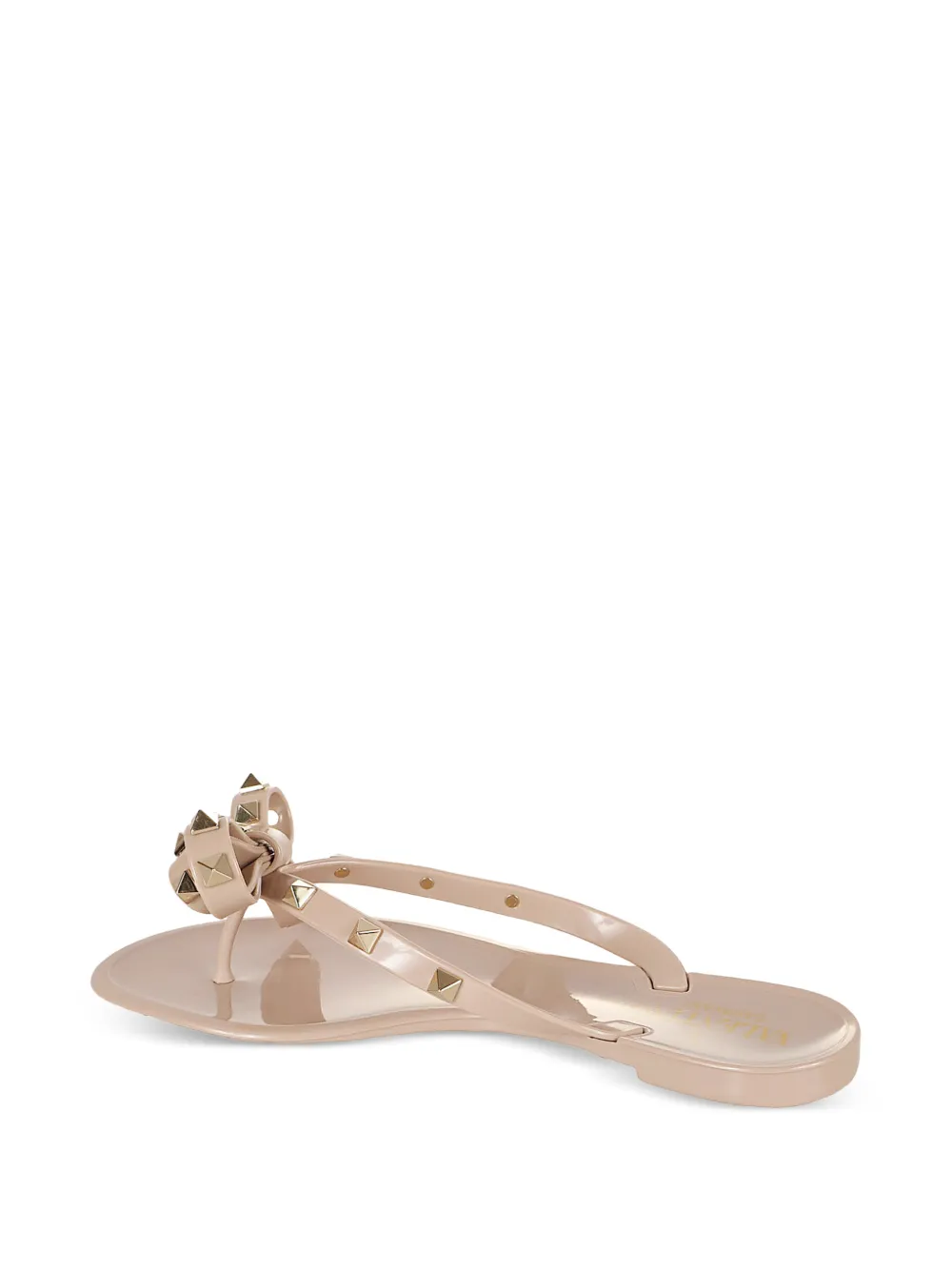 Valentino Garavani Rockstud slippers Made in Italy Highlights Valentino slippers powder pink gold-tone Rockstud embellishment bow detailing thong strap branded insole flat rubber sole slip-on style The full look includes Valentino Garavani accessories. Composition Sole: PVC 100% Lining: PVC 100% Outer: PVC 100% Product IDs FARFETCH ID: 14783396 Brand style ID: WS0552PVS