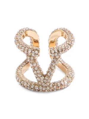 Adorned with delicate crystals, this gold-tone ring from Valentino Garavani takes the shape of the iconic VLogo motif, first introduced during the house's Sala Bianca show in 1968.