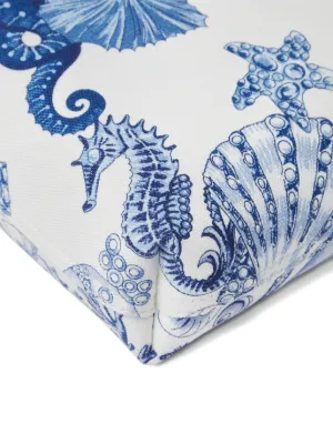 Versace Coral Theatre La Medusa canvas tote bag Imported Highlights blue Coral Theatre Allover print dual top handles spacious main compartment leather trims Composition Outer: Cotton 57%, Calf Leather 43% Product IDs FARFETCH ID: 29867473 Brand style ID: 10200041A14990