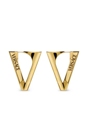 Final Sale Versace triangle logo-detail earrings Imported Highlights gold triangle shape logo detail hoop design polished finish V-shaped design Composition Metal Product IDs FARFETCH ID: 31128129 Brand style ID: 10214751A00620