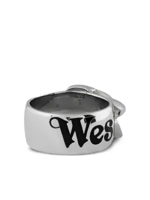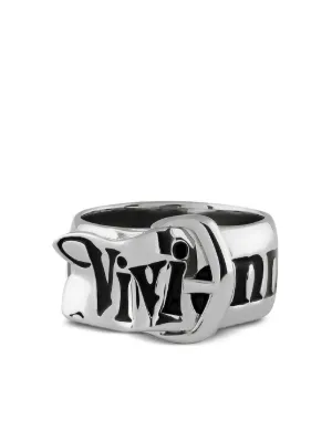 New Season Vivienne Westwood buckle-engraved ring Imported Highlights silver tone brass buckle detail engraved lettering black enamel wide band Composition Brass Product IDs FARFETCH ID: 31683668 Brand style ID: 6404017V01P107