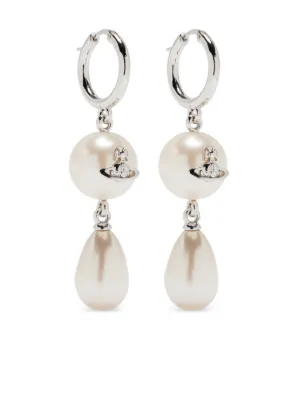 Vivienne Westwood Martha earrings Imported Highlights silver post-back fastening two pearl embellishments orb detail dangling design for pierced ears These earrings come as a pair Composition Resin, Brass Wearing The model is 5 ft 9 in. Product IDs FARFETCH ID: 31791149 Brand style ID: 6202017702P103