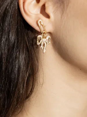 safety-pin bow-pendant earrings