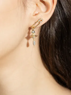 New Season Vivienne Westwood safety-pin bow-pendant earrings Imported Highlights gold-tone orb pendant safety pin detail bow detail embellished These earrings come as a pair. Composition Brass, glass Product IDs FARFETCH ID: 34043553 Brand style ID: 6202017B02