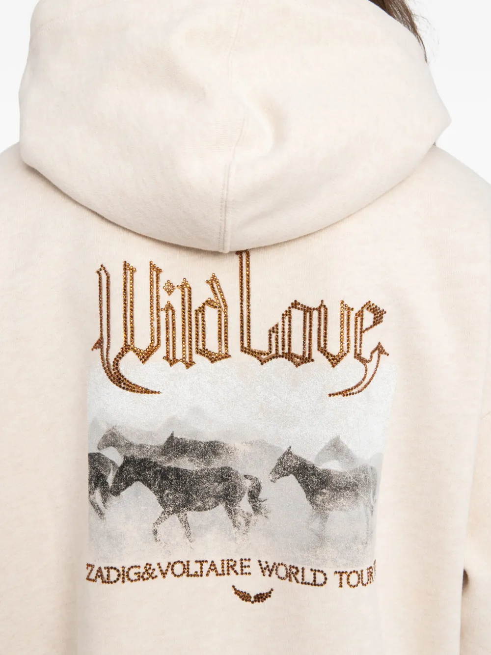 Zadig&Voltaire zip-front hoodie Imported Highlights beige embroidered wing logo front zip fastening long sleeves kangaroo pocket Composition Cotton 81%, Recycled Polyester 19% Washing instructions Machine Wash Product IDs FARFETCH ID: 29852274 Brand style ID: JWSS01663